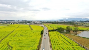 近日,宾阳县大桥镇的油菜花迎来盛花期,千亩油菜花与穿梭在花海间的公路勾勒出一幅优美的新春画卷。