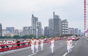 ↑火炬手方愉婷在火炬传递中。