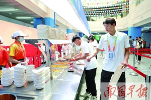 在饮食上,运动员村除了提供多达900多道的美味佳肴外,餐厅内的明档区还提供广西传统工艺菜式的制作服务,运动员足不出村就可品尝到南宁老友粉、桂林米粉等八桂美食,感受广西美食文化的魅力。“正式开餐后,每一个菜品前将设置营养菜单卡,菜单卡上含菜品名称、菜品属性、主辅料、主要烹饪方法、每100克营养数据、过敏原信息等,帮助运动员根据自己的营养需求更好地选择食品。”运动员村村委会餐饮服务中心常务副主任谭国凯说。(记者 钟文昌)