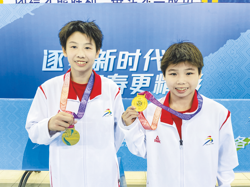 此次比赛分甲组(12-19岁)和乙组(9-16岁)两个组别,每组分别设女子双人全能、女子三人全能、男子双人全能、男子四人全能、混合双人全能和大集体6个小项。南宁队派出26名运动员,参加全部12个小项的比赛。