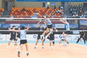 10月31日,在学青会(公开组)排球男子18岁以下组比赛上,上海黄浦区队战胜浙江杭州市队入围决赛。 记者 管林华 通讯员 曹琦琦 摄