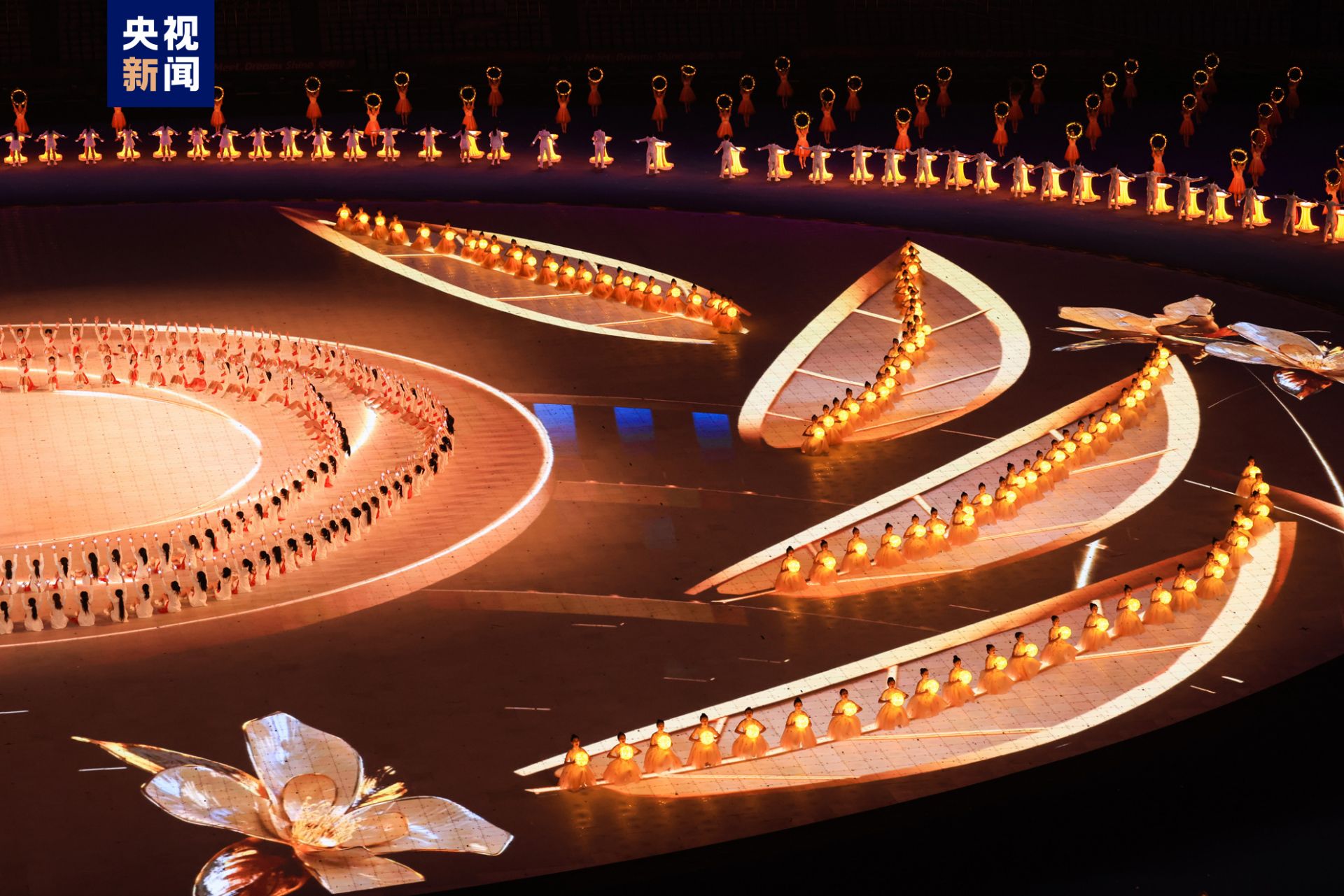 “赛道上”——舞美以赛道的延伸、拓展和螺旋上升为形态,构筑充满想象的青春空间。通过巧妙的视觉设计,让场景瞬间转换于黄布倒影、漓江双月、德天瀑布……呈现穿行山海、奔腾潮涌、竞技赛道的舞美空间。同时,运用LED屏幕、网幕、高清激光投影、高空威亚、焰火等多种技术组合,将时代性、科技性、创新性与表演有机融合,营造青春无限的奇幻场景,体现学生青年一代在赛道上奋进前行、奔赴未来。