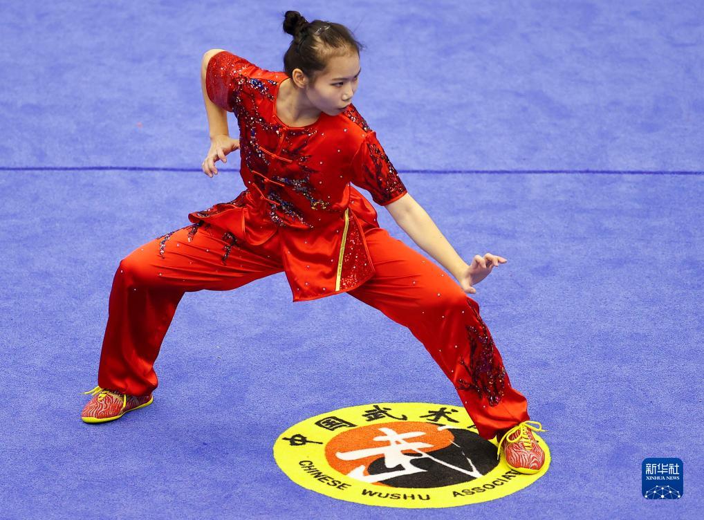 南拳赛场上,广西队运动员蒋安琪手起肩随,动作紧凑,劲力刚健,攻击勇猛,将南拳的刚烈风格展现得淋漓尽致,最终以9.713分斩获金牌。广东队运动员王笑、福建队运动员余佳澍分别以9.710分和9.700分的成绩获得银牌、铜牌。