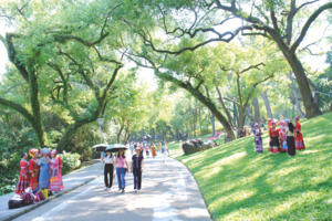 昨日,南宁天气晴朗,市民在人民公园拍照、休闲健身。记者 宋延康 摄