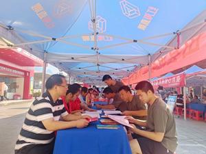图为企业代表和志愿者为退役军人求职者提供就业咨询服务。