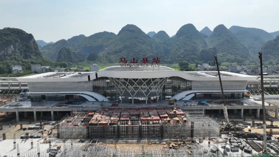南宁云—南宁日报讯(记者阮晓莹 通讯员莫育杰 莫小斌 韩超)6月12日,贵南高铁马山县站完成最后一块弧面幕墙曲面玻璃安装,标志着贵南高铁广西段6座新建站房外部装修全面完成,为确保站房顺利交付使用奠定基础。