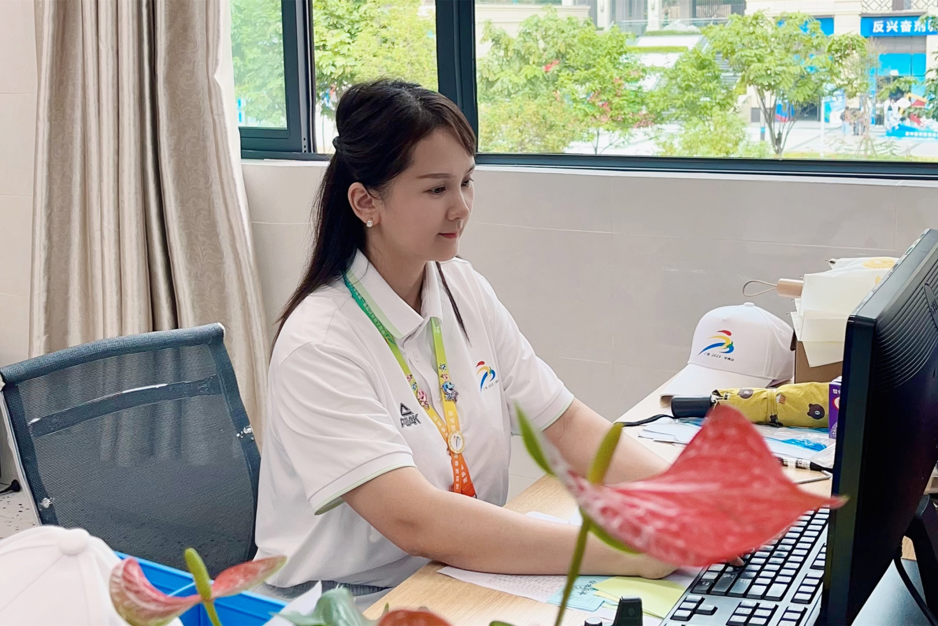 统筹村内外交通指挥调度并非易事,早出晚归对苏妮来说已是常态,但她带领着同事始终以饱满的热情和扎实的作风为运动员们提供安全、周到、优质的交通出行服务。在运动员村村内交通中心办公室内,挂着的一幅由重庆市代表团赠予,印着“真情待客 热情服务”的感谢锦旗便是最佳证明。“在村里工作的这段时光对于我和我的同事都将是一段珍贵的、难忘的日子,这些感谢和赞扬也将鼓励我们以最积极的状态服务到最后一刻,让这次学青会成为大家的美好回忆。”苏妮说。